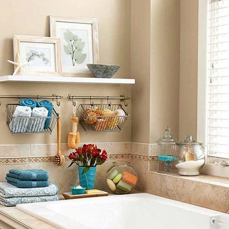 You can individually nail the baskets on the walls or create a shelve-like symmetry using the baskets. Though this may seem like a no-brainer suggestion, wall baskets are a foolproof blueprint for livening up your bathroom. Get rid of all the ugly paraphernalia in your bathroom cabinets and transfer your cute bottles and products on these cute shelves instead.