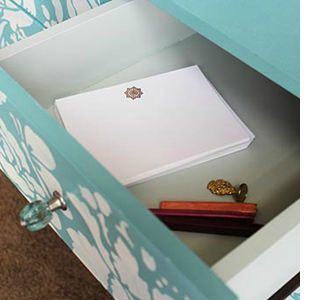 Using a stencil on furniture is as easy as using on walls. While we don't have a huge selection available locally, because stencils are lightweight, you can easily order from overseas and have it shipped. The stencil featured in this project is the French Floral Damask available online from Royal Design Studio.