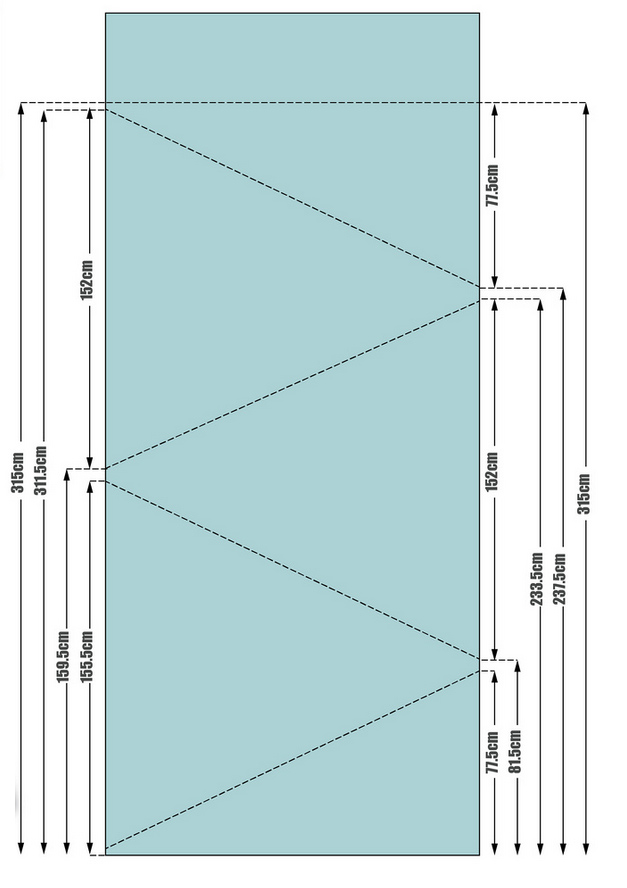 4. Stitch along the top at 30cm down from top of triangle and then stitch each side of the seam with a 12mm seam allowance.