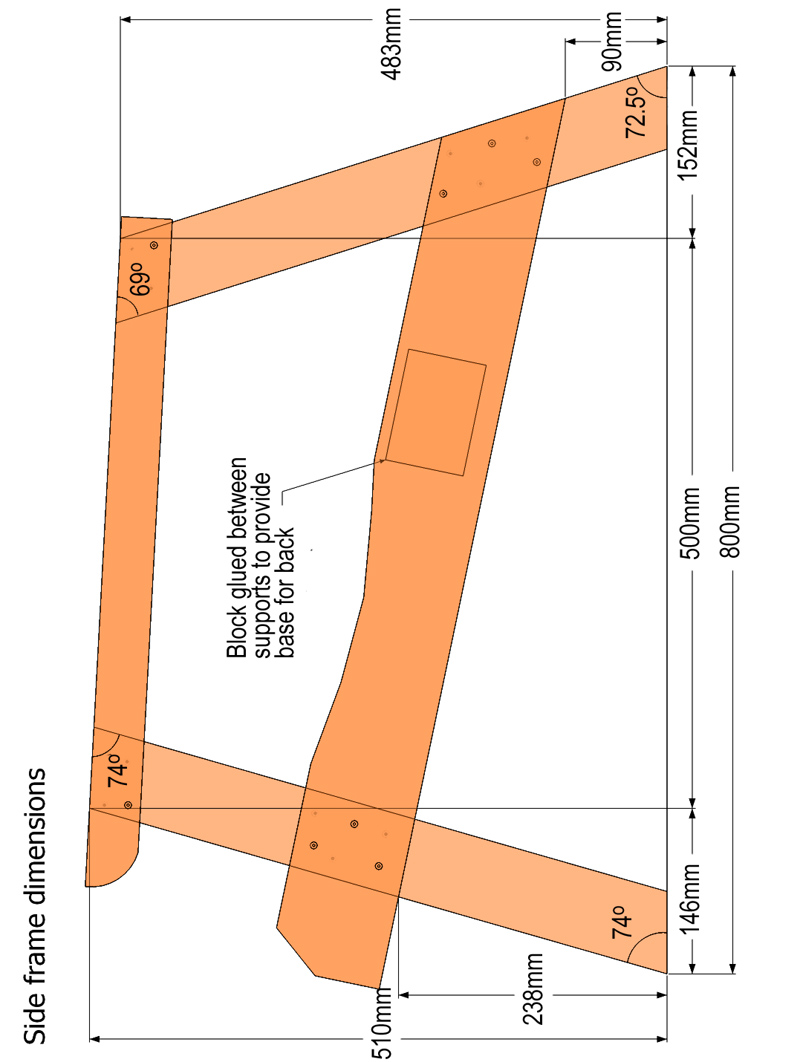 If this is your first chair, do a trial fit using quick clamps and laying the seat boards down without nailing. Once you are happy with the angle, make a mark before gluing and nailing it on one side.