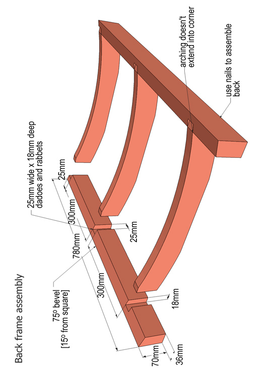 The top of the back boards form a curve. Use a template or draw freehand and cut the curve before attaching the boards to the back frame.