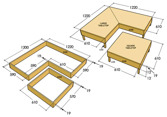 Shop around for a modular coffee table like this one in a furniture store and you could easily end up paying over R1000 each. Make it yourself and you'll spend around R600... for the set!